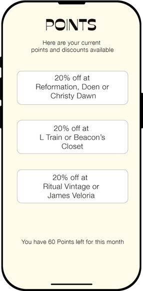 An app that incentivizes sustainable shopping through a rewards program. The earthy, fashion forward color palette signals the company's commitment to the environment and knowledge of what's in style.